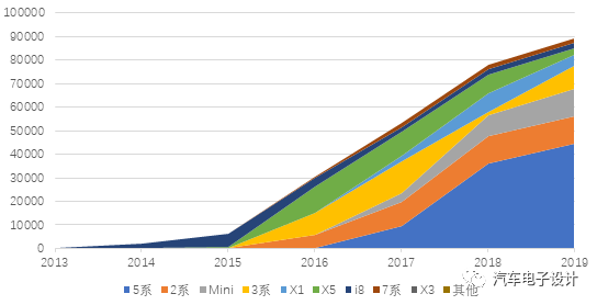 图 2 BMW 的各个 PHEV 车型的销售情况