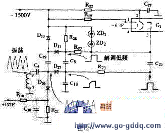 解调增辉电路的作用是通过低压的变化来控制高压的变化,产生相对阴极变化的负偏压。电路图如图2所示。