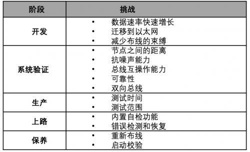 测试车载网络要求在整个车辆中进行可靠性校验,包括互操作能力、抗干扰能力、串扰和干扰源。检验运行功能和通信可靠性将涵盖汽车内部每一个 ECU 管理的连接总线的系统(图 5)。随着汽车的数据密集度越来越高,测试对保证生命周期所有阶段的安全可靠运行变得至关重要,包括开发、验证、生产、维护和保养。
