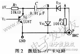 3)快速恢复型二极管Vd1、Vd2滤去充电脉冲,使A点只有放电时的负电压激励脉冲。