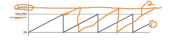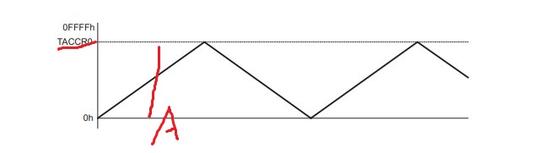 值得注意的,值增计数模式的话的时候,如果突然间TACCR0上的值被改变,表示峰值被改变,假设由原来的峰值A变成峰值B