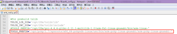 设置TOOLS_PREFIX为arm-poky-linux-gnueabi编译器的路径,如下图所示: