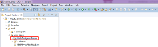 aw_m1052_disk-2.0.0-testexamplesapplicationapp_awtk_demosrcuser_apps目录下,再刷新工程,显示如下图所示。然后就可以编译和调试工程了。