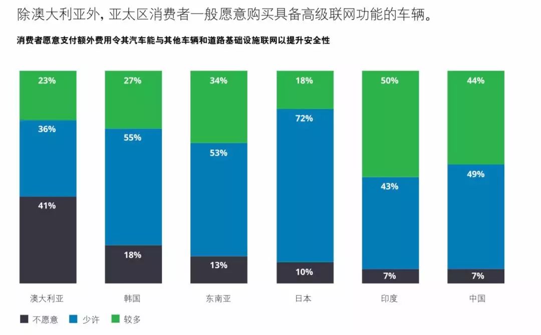 目前,主流的新能源电动汽车,V2X 车联网前装已经实现 100%的装机率。车联网功能的丰富度,正在成为消费者在除了续航里程等决策因素外主要考虑的购车因素。一份调查显示,我国消费者愿意花费少许(49%)或者较多(44%)的额外费用,来购买具备高级车联网功能的车辆。