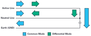 传导EMI通过寄生阻抗以及电源和接地连接以传导方式耦合到元件。噪声通过传导传输到另一个器件或电路。传导EMI可以进一步分为共模噪声和差模噪声。