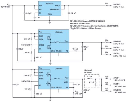 图10.为 AD9625 ADC供电的典型电源设计。