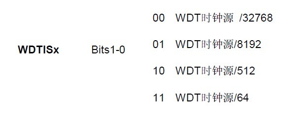 比如选择SMCLK 频率1MHz WDTISX 为10 即512 则中断时间为0.5ms