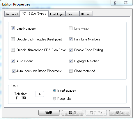 ——打开 Editor =》Properties... 菜单,选C File Types标签,选中Auto Indent。