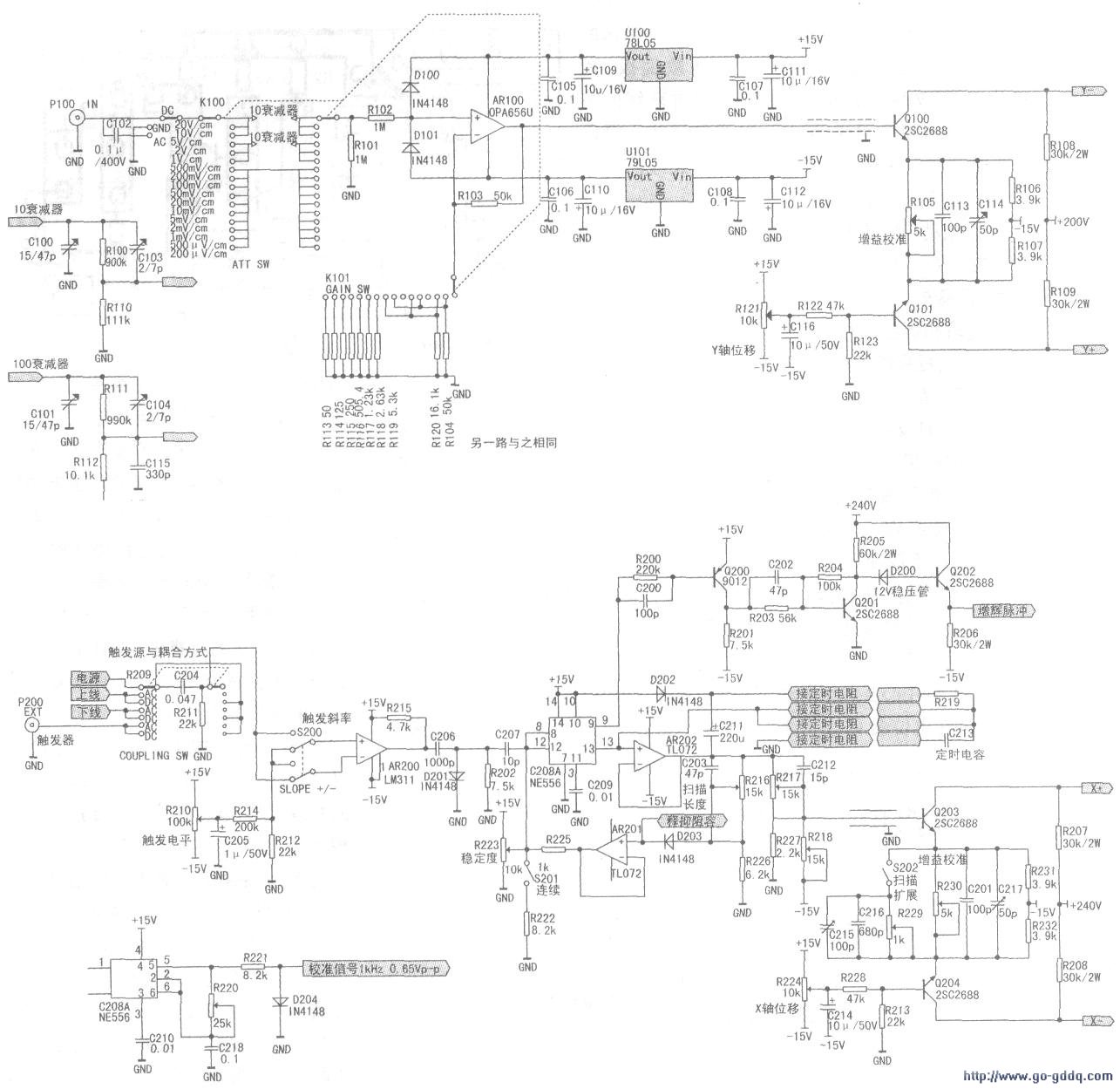2、水平通道(X轴)与时基电路,见图2、3;