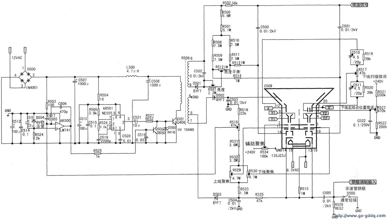 3、高压电源和示波管电路,见图5;
