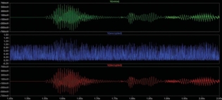 图9显示了LTspice图窗口的原始语音、加密语音和解密语音信号。