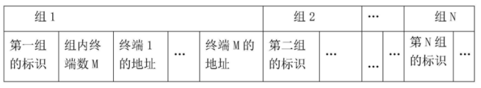 一种较为简单的将终端组的标识与各个终端的地址的映射关系以分组管理帧的形式告知终端的方式如下表所示,通过这个表展示的终端分组管理帧,终端就可以获知自己所在的终端组的标识。