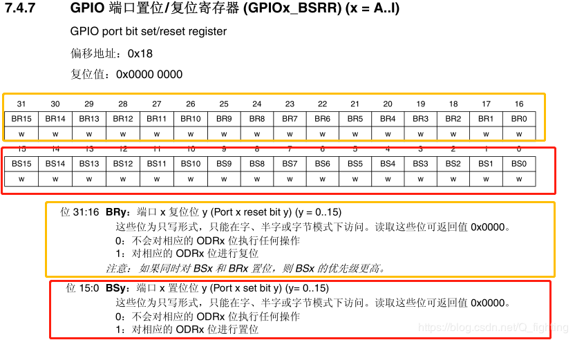 ⑦ GPIO 端口置位/ 复位寄存器 (GPIOx_BSRR) (x = A..I)