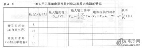 将开关Jl断开(即不加自举电容C3),重复上面步骤(4),将测试数据记录于表4-8中。