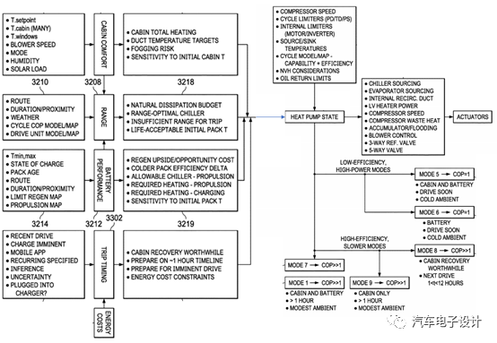 COP=1:热泵系统不工作的,主要是在环境温度很低的时候(-20℃),这里的做法就采用特殊的做法,按照之前处理办法,把驱动系统的做法堵转方式,把压缩机的控制算法改了,把一个电机作为加热器来使用(The control electronics may control the compressor to operate in a lossy mode in which the compressor generates heat)