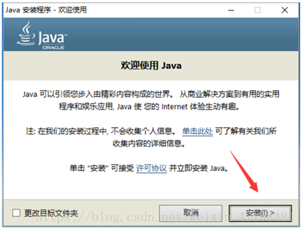 【不更改目标文件夹,则默认安装在:C:Program FilesJavajre1.x.0_xxx】