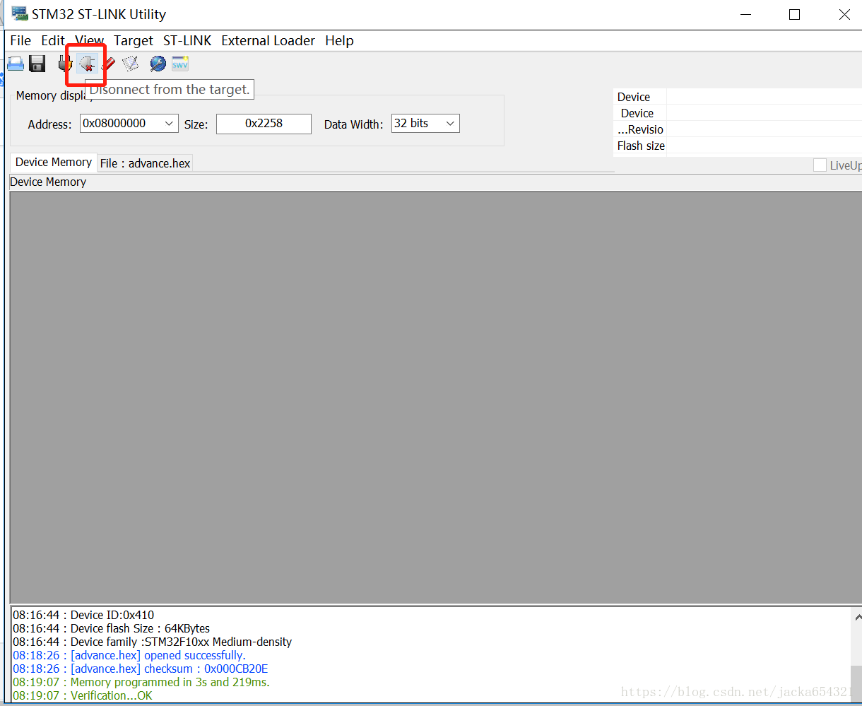 断开连接后,关闭软件,用跳线帽设置BOOT0=0,BOOT1=0,再按reset。