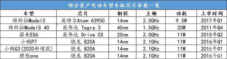 首先,在分析车机芯片卡顿原因之前,先用一张汇总图来显示当下主流电动车型正在使用的具体车机芯片型号及其参数规格。从图中可以看出,骁龙820A已然成为除特斯拉、蔚来外,大多新势力车企的首选目标,也成为行业之中的主流产品。