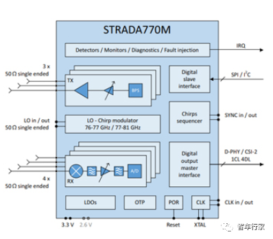 意法半导体为 STRADA770M 提供了一种带集成 FMCW 啁啾调制器和基于剖面的序列器的双频 77ghz 雷达收发机,目标是在 76-77ghz 和 77-81ghz 调节频带内应用于汽车雷达。