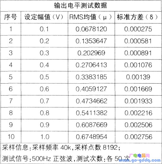 (7).输出电平稳定度:利用ADLINK采集卡PCI-9118和相关软件对输出电平进行自动测试,所测数据和测试程序见输出电平测试数据表