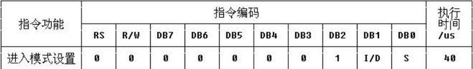 功能 : 设定每次定入 1 位数据后光标的移位方向 , 并且设定每次写入的一个字符是否移动。参数设定的情况如下所示: