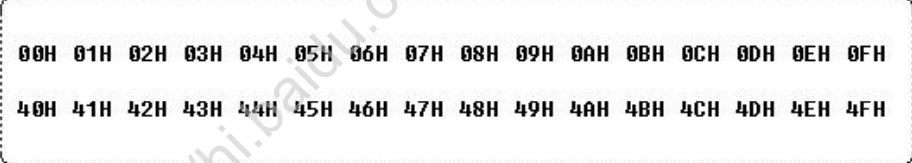 要显示字符时要先输入显示字符地址,也就是告诉模块在哪里显示字符,例如第二行第一个字符的地址是 40H, 那么是否直接写入 40H 就可以将光标定位在第二行第一个字符的位置呢?这样不行,因为写入显示地址时要求最高位 D7恒定为高电平 1 所以实际写入的数据应该是 01000000B(40H)+10000000B(80H)=11000000B(C0H)。在 1602 中我们就用前 16 个就行了。第二行也一样用前 16 个地址。对应如下: