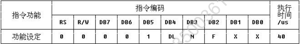 功能:设定数据总线位数、显示的行数及字型。参数设定的情况如下: