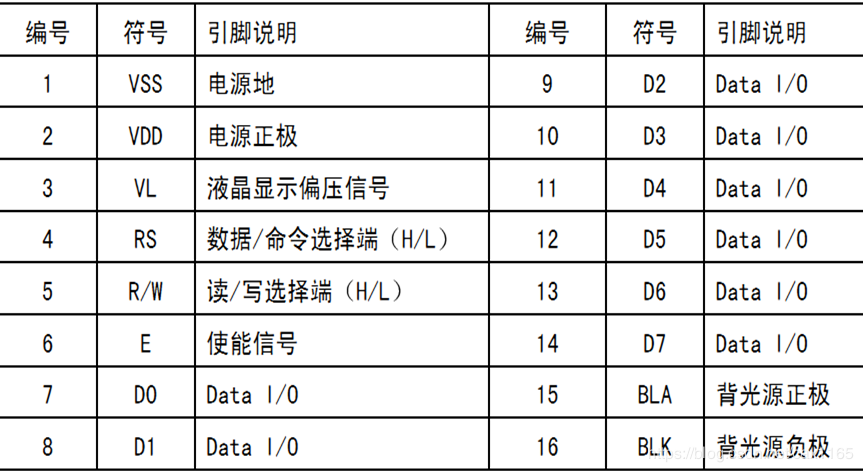 1602的引脚