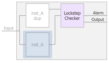 如图所示,安全合成创建模块的第二个实例,并为第一个和第二个实例之间的所有输出和输入以及lockstep检查器建立适当的连接。