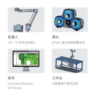 海克斯康蓝光协作现场自动化测量方案,是专为协作测量而开发的快速自动化方案,它将UR协作机器人与蓝光扫描技术相结合,安装简易且移动灵活,满足了企业用户在不同场地进行高效测量的检测需求。