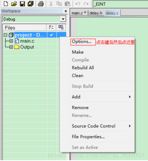 工程上单击右键,选择Option,打开工程设置窗口(如下图)