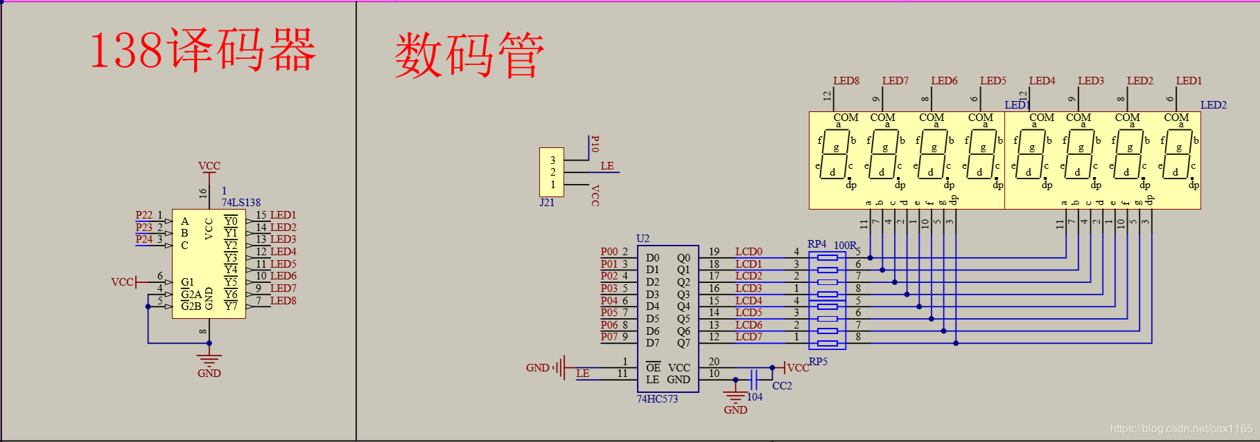 开发板数码管模块电路图如下: