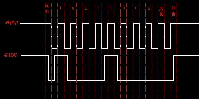 当开始发送数据的时候 时钟线为高同时数据线从 高电平变低电平,代表开始发送数据。