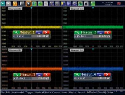 移动设备在变得越来越小的同时功能却越来越多,客户还期望电池使用时间能更长一点。降低耗电量是此类装置设计中面临的最大考验。尽量保持低压供电,以便在高速数据传输情况下将耗电量降至最小。因此设计中大量采用了低摆幅信号与低压差分信号 (LVDS) 。低摆幅度信号在模拟和混合电路中也很普遍,与前面所述原因相同,如 D/A 转换器和放大器中也使用了低电压信号。传统示波器在高垂直灵敏度下,不能提供全带宽测试此类信号,这样会使高精度测量非常难或者不可能完成– R&S®RTO现在可以帮助解决这一问题(见图 1)。2 测量测试解决方案 用于测量高频信号的有源探头通常采用 10:1的分压,这会将原来的小信号的幅度压低到原来幅度的1/10。当测量电压摆幅为 350 mV 的 LVDS 信号时,示波器只输入了35 mV 的电压摆幅。示波器的垂直刻度应设定为 40 mV/div或4 mV/div 以便优化信号显示(见图 2)。R&S®RTO示波器具备高性能的模拟前端放大器,可将灵敏度调至 1mV/div,充分利用 A/D 转换器的全部动态范围。其他示波器使用软件放大,仅仅放大了信号在屏幕上的显示比例, 但实际仅仅利用了 A/D 转换器的一小部分,测量误差巨大。另外,由于R&S®RTO 示波器的本底噪音很低,也就无需通过采用限制输入信号带宽的办法进一步降低噪声, 在最高的灵敏度设置下可以做到全带宽精确测量。