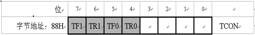 TCON的低4位用于控制外部中断,已在前面介绍。TCON的高4位用于控制定时/计数器的启动和中断申请。其格式如下: