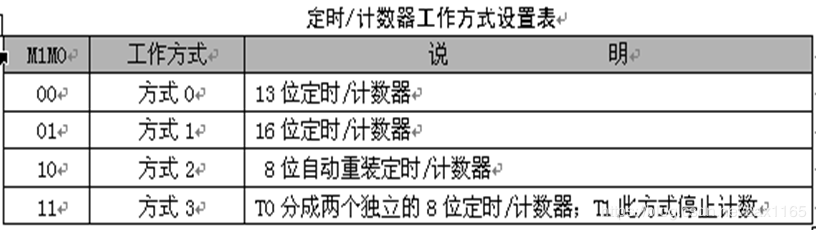 M1M0:工作方式设置位。定时/计数器有四种工作方式。