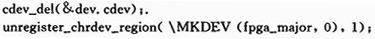 在卸载函数中,删除一个cdev,完成字符设备的注销,然后释放设备编号: