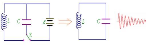 无磁水表的基础原理是LC振荡传感器,在该电路中,通过开关K调整,可以在LC电路上实现一个正弦波输出电路,通过K对电容C充电,充满后,将K与电感L连通,电容的电量将通过L放电,由于存在电感L的电能消耗,所以将会呈现一个逐步衰减的正弦波输出。如下图