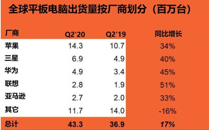 2020年08月06日 | 2020年Q2平板电脑市场增长率创六年新高,线上销售大热