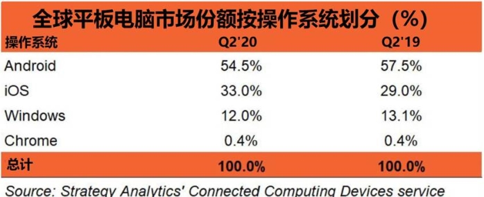Strategy Analytics互联计算服务总监Eric Smith表示:“由于世界上一些最大的市场疫情仍然没有得到控制,而且研究表明一些员工和公司已经习惯了远程工作,因此可以肯定地说,平板电脑的需求暂时不会有变化。平板电脑已经从鼎盛时期的娱乐设备发展成为能够处理工作和学校任务的设备,这拓宽了消费者和商业客户在新常态下升级或购买新设备时面临的选择。”