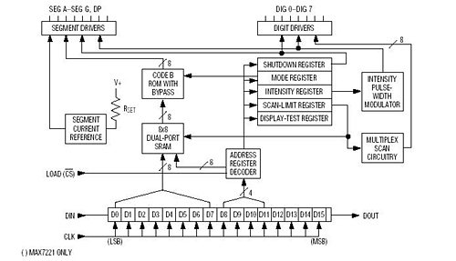 下面从使用的角度,对MAX7219内部控制器的功能加以说明: