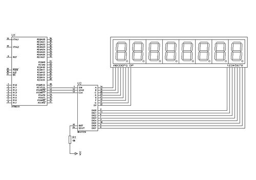 (24)脚:DOUT。串行数据输出。输入到DIN的数据在16.5各时钟周期后,在DOUT端有效。该脚常用于几个MAX7219的级联。