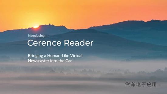Cerence Inc.(NASDAQ: CRNC), AI for a world in motion,于8月3日发布了Cerence Reader,这是一款基于神经网络的语音合成(TTS)新产品,为目前市场上最先进的语音合成技术,可以通过像真人一样自然、并富情感的声音为行车中的驾驶者播报新闻。