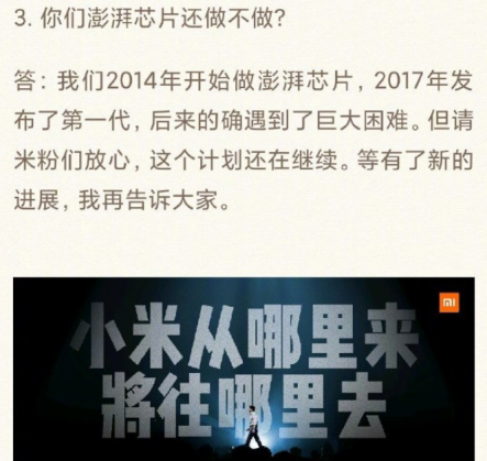 2020年08月15日 | 雷军:澎湃芯片计划遇巨大困难,仍在继续