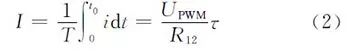 式中,t0=Tτ,i为电流的瞬时值,UPWM为PWM的输出电压。在获得同样的发光亮度时脉冲电流驱动方式比直流电流驱动方式所需要的电流值更小,所以脉冲电流驱动可以给系统带来高效性。