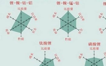 图1比较了5种电池在安全性、比能量(也称为容量)、比功率(电池的大倍率充放电的能力)、电池的高低温性能、寿命(包括使用寿命和储存寿命)以及成本 6个指标的性能。但图中没有提及充电时间,如果有合适的电源插座可用,电动汽车动力系统的所有电池都可以快速充电,超快速充电是个例外情况,不过大多数用户还是能够接受几个小时的充电时间的。图1 也没有列出自放电性能——这是另一个需要重视的电池特性,在一般情况下,锂电池自放电速率较低,如果电池是新的,自放电几乎可以忽略不计。然而,因受热引起的电池的老化会加速电池的自放电并引起电池管理上的问题。在电动汽车可选的电池类型中,磷酸锂电池比其他电池系统自放电速率都高。