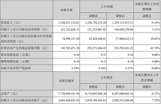 8月28日,露笑科技发布半年度报告称,公司上半年实现营业收入为11.45亿元,同比下降9.10%;归属于上市公司股东的净利润为1.51亿元,同比增长3.21%。
