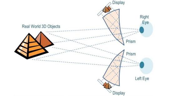 比如上图这种 AR 现实增强眼镜,它通过镜片的部分反射特性,特别针对左右眼来达成 3D 画面观感,与此同时还确保看到眼镜外的现实世界。这本身就是透明显示(see-through display)的一类方案,但不是我们要在本文探讨的重点。