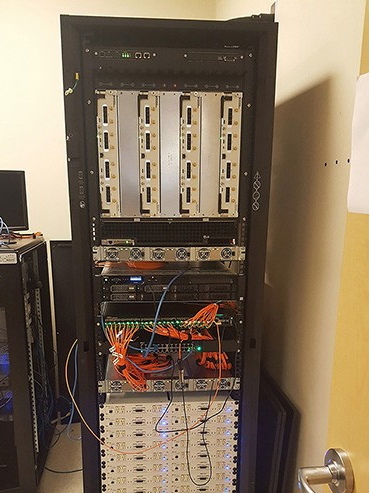 图1. DARPA Colosseum测试台配备128个Ettus X310 USRP和NI ATCA-3671处理单元。