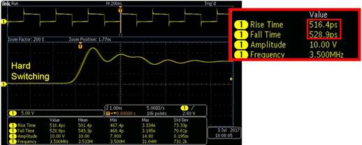 图3. 由于450 ps上升时间指标,1 GHz泰克TPP1000无源探头能够准确地测量高速FET。